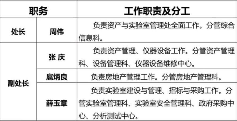 资产与实验室管理处责任分工